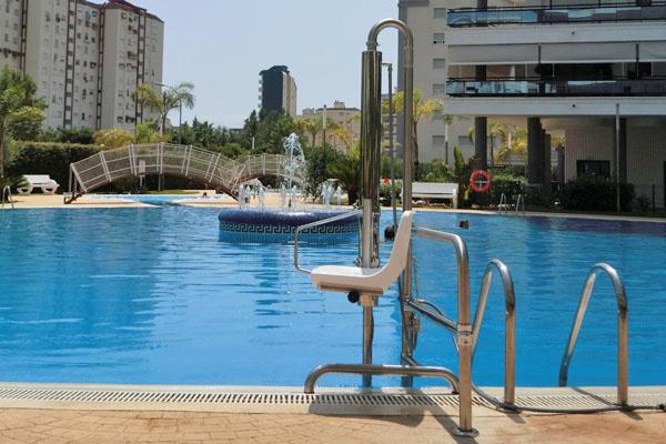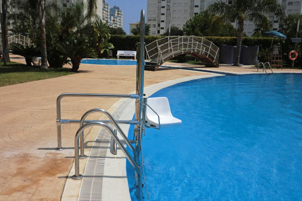 - Salvaescaleras especial para piscinas para acceso a piscinas de discapacitados o personas con movilidad reducida.
